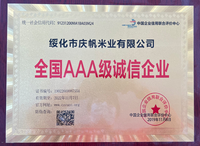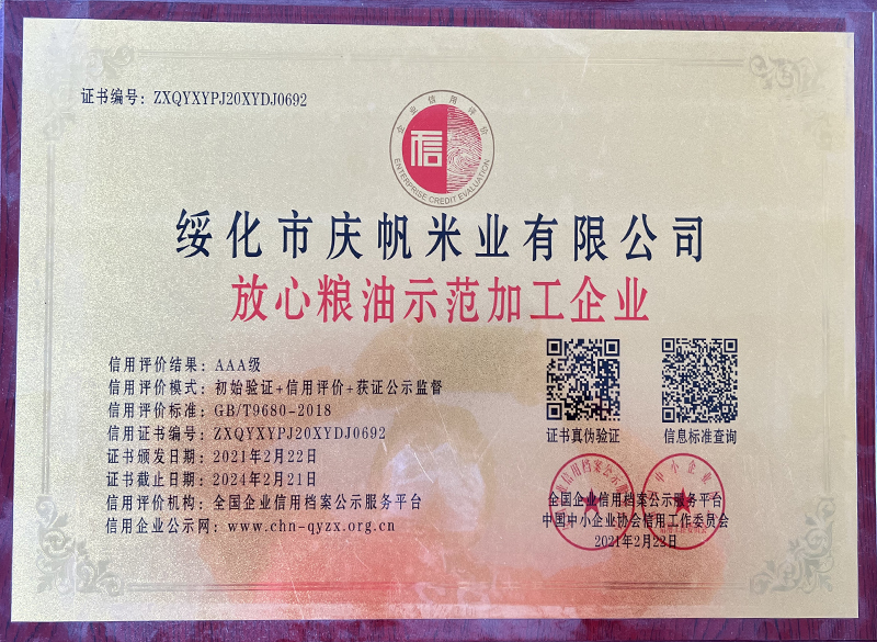 關(guān)于慶帆米業(yè) 客戶至上 品質(zhì)優(yōu)良 您現(xiàn)在的位置:網(wǎng)站首頁 > 關(guān)于我們 > 資質(zhì)榮譽(yù) 企業(yè)文化 CORPORATE CULTURE 資質(zhì)榮譽(yù) HONOR 領(lǐng)導(dǎo)致辭 LEADER’S SPEECH 公司簡介 COMPANY PROFILE 黑龍江省質(zhì)量品牌雙保障信用認(rèn)證企業(yè) 放心糧油示范加工企業(yè) 綠色品牌 中國綠色“健康米” 全國AAA級誠信企業(yè) 中國產(chǎn)品質(zhì)量檢測標(biāo)準(zhǔn)合格企業(yè) 共15條記錄 當(dāng)前為第2頁/共3頁上一頁123下一頁